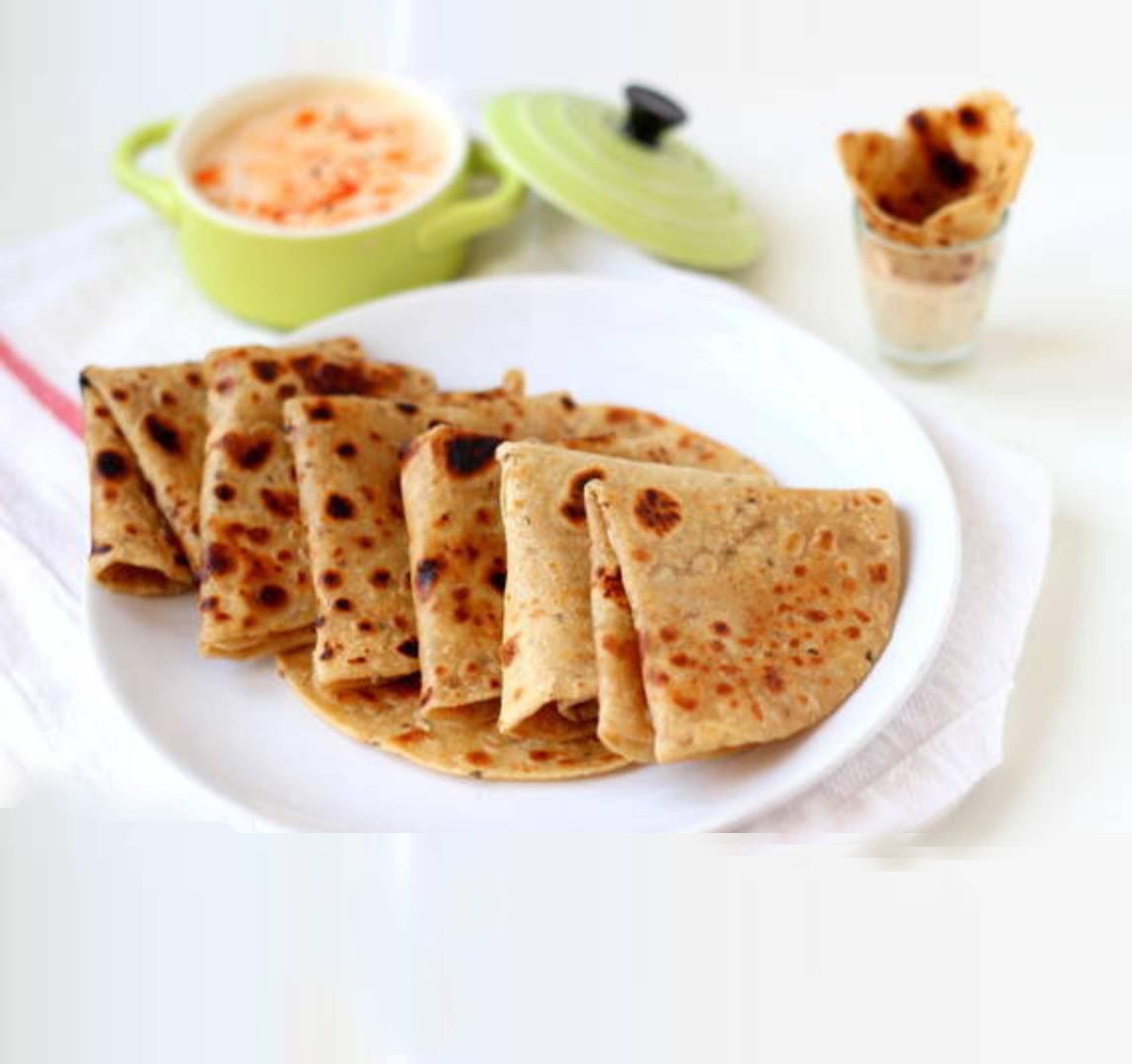 1 Piece medium wheat flour Paratha Stuffed with seasonal Vegetables and fired in Deshi Ghee with Chole, Aalu ki sabji, Seasonal Vegitables, Rayata, Salad, Sweet & Salted Chatani and Pickle