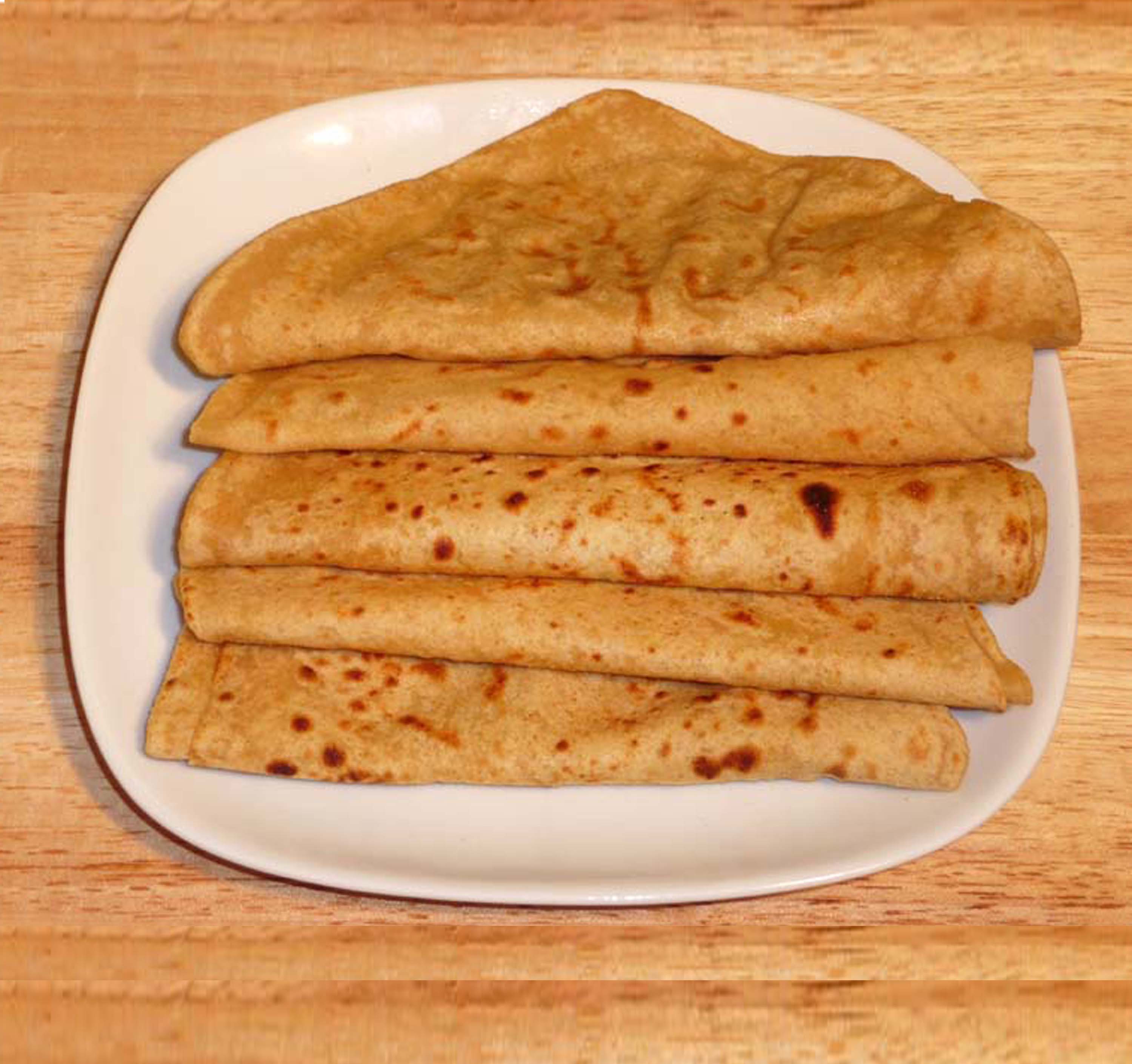 1 Piece medium wheat flour Paratha included with Ajwain and simply fired in Deshi Ghee with Chole, Aalu ki sabji, Seasonal Vegitables, Rayata, Salad, Sweet & Salted Chatani and Pickle